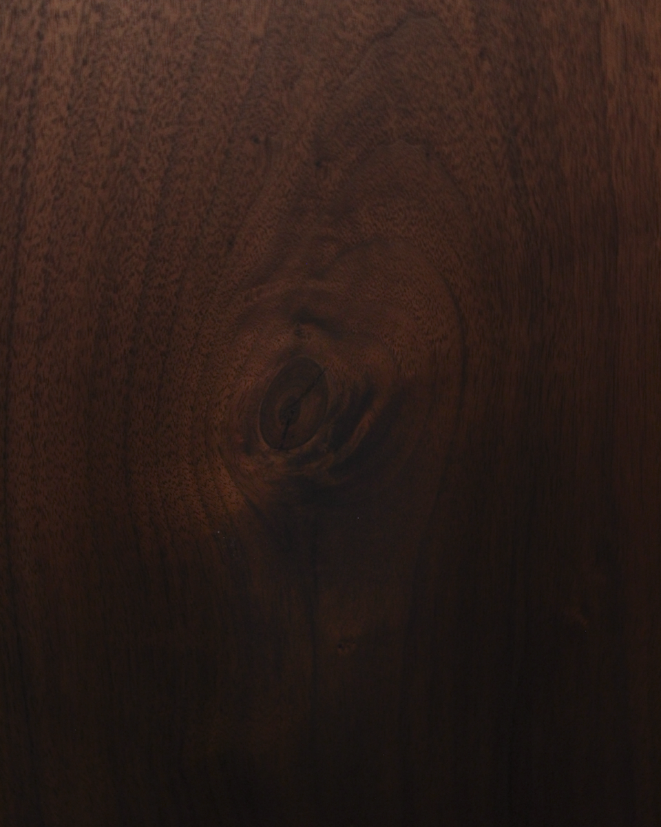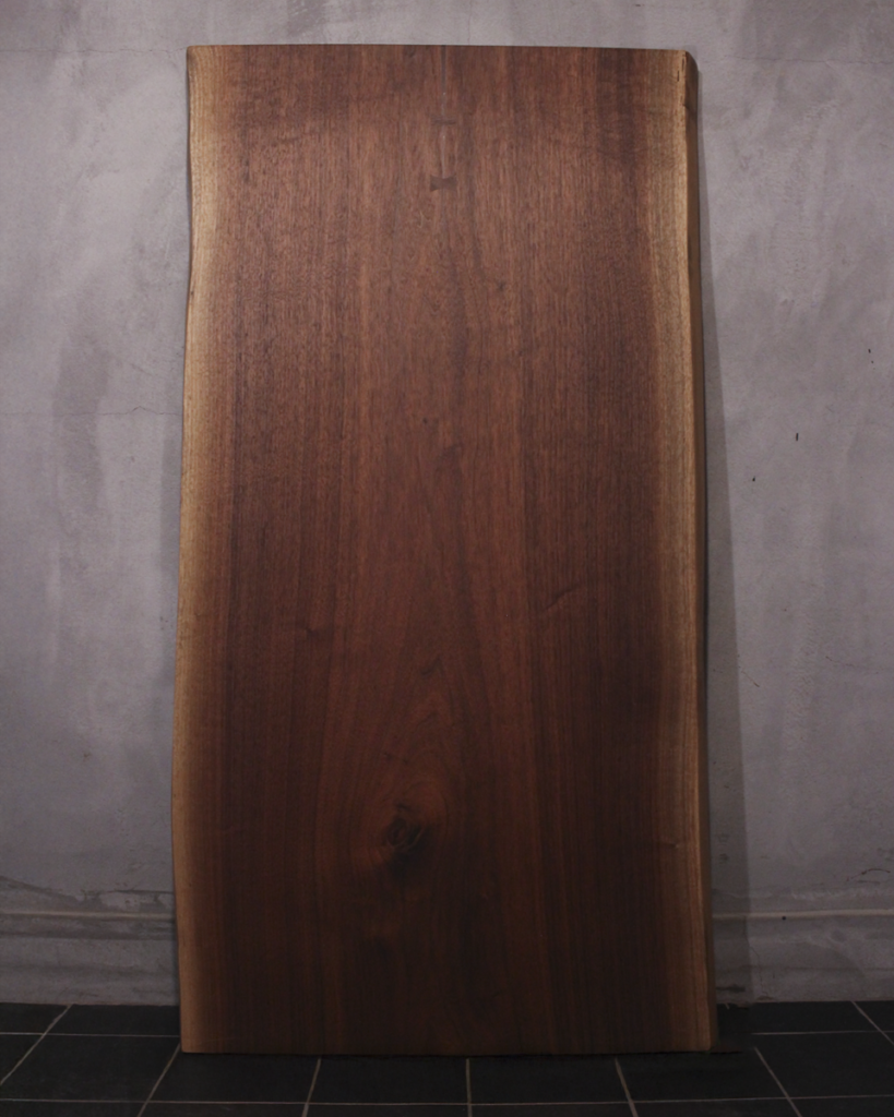 深い茶系色にゆっくりと流れる木目。北米産ブラックウォールナットらしい重厚さと艶が際立つ一枚板です。
