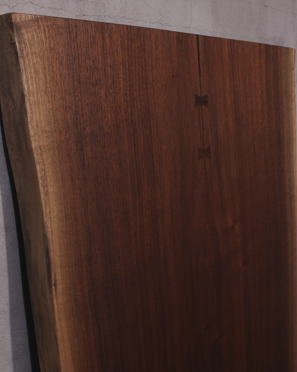 乾燥の際に生じたワレには同材で丁寧に入れ込んだチギリを二つ。木の個性を高めながら、強度と意匠としての美しさを追求しています。年数が経つにつれ味わいを増し、長くご愛用していただけます。