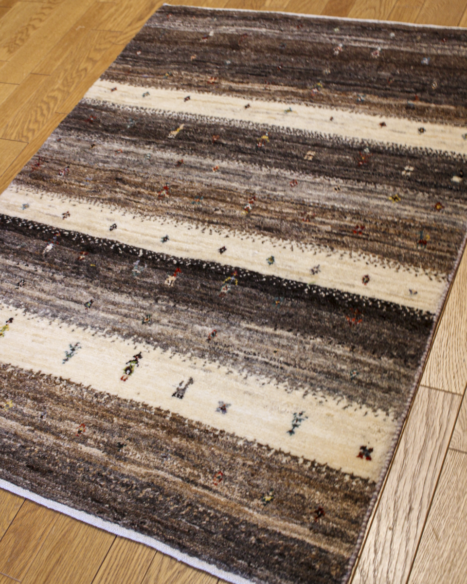 落ち着いた色調の中に、静かな温もりを宿すゾランヴァリのギャッベ。空間に自然と馴染みながら、確かな存在感を放つ一枚です。